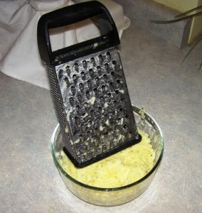- Grate the potatoes, either by hand or with a food processor.