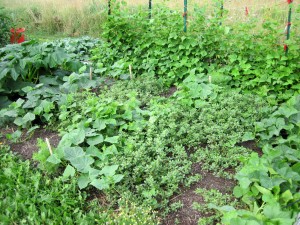 Vine crops like cucumbers crawl over the top of it. Taller crops like corn or peppers eventually shade it out. It’s easy to trim or pull as needed.